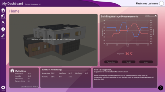 The objective of this project was to design a user-focused building management system interface that displays information from other adjacent projects such as building sensor data, processed Landgate data and case study information.